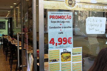 | グレリゴス教会近くの店に入ってみます。右上の4.99EUR(897円)のセットメニュー。(2025年9月12日) 2025年11月記 |
