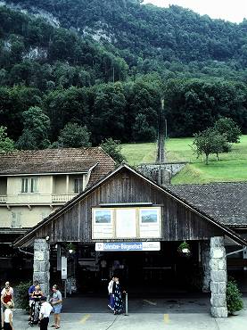 | ビュルゲンシュトックのケーブルカー乗場。湖上の定期船より。(2000年7月1日) 2025年12月記 |