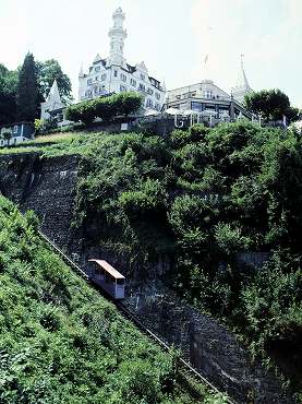 ルツェルンのシャトーギュッチェへ行くケーブルカー。(2000年7月1日) 2025年12月記 |