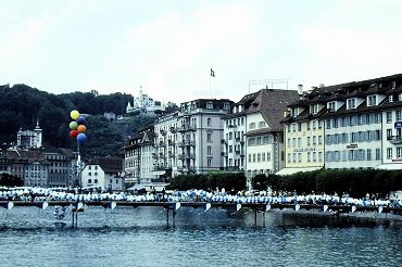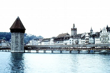 ルツェルンを流れるロイス川に架かるカペル橋。(2000年7月1日) 2025年12月記 |