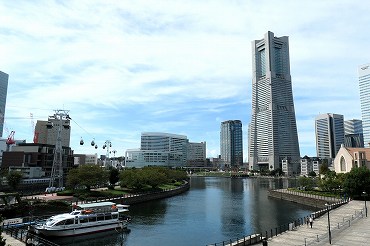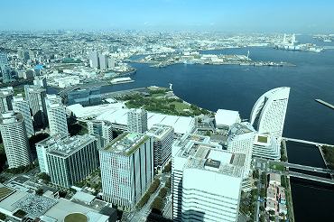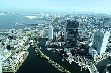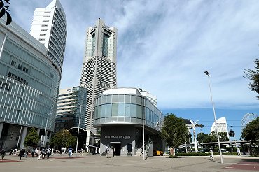 | 横浜港、高層ビルがランドマークタワー、右の半月状のビルがパシフィコ横浜、中央にコスモワールドの観覧車。(2012年4月1日) 2012年8月記 |