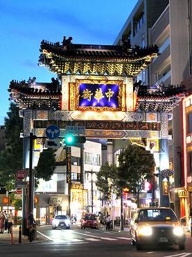 横浜中華街にはいくつかの門があります。これは中華大通り西の善隣門。(2008年3月16日) 2012年8月記 |