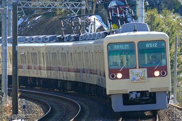8000系の新津田沼行き。アートトレインのヘッドマーク付き。(2008年2月10日 薬園台) 2012年10月記 |