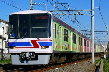 8000系の松戸行き。アートトレインのヘッドマーク付き。(2008年2月5日 京成電鉄京成稲毛) 2012年10月記 |