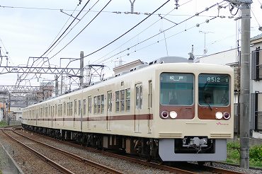 | 8000系の京成津田沼行き。懐かしの復刻デザイン車。(2008年2月1日 松戸) 2012年10月記 |