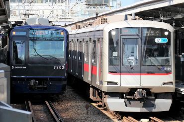 5080系8両の高島平行きと相模鉄道9000系。(2023年4月3日 相模鉄道鶴ヶ峰) 2025年11月記 |