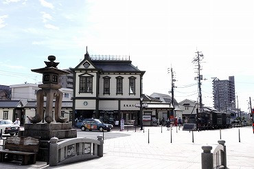 道後温泉駅。手前に坊ちゃん列車が飾られています。(2017年12月12日 道後温泉) 2017年12月記 |
