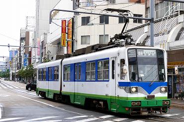| F1000形「ふくらむ」の田原町行き。(2016年6月27日 市役所前) 2016年6月記 |