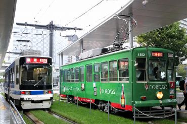 | 8800形の「ビアガー電」。この車両は夕方になると出庫。(2010年8月11日 上熊本駅前) 2014年2月記 |